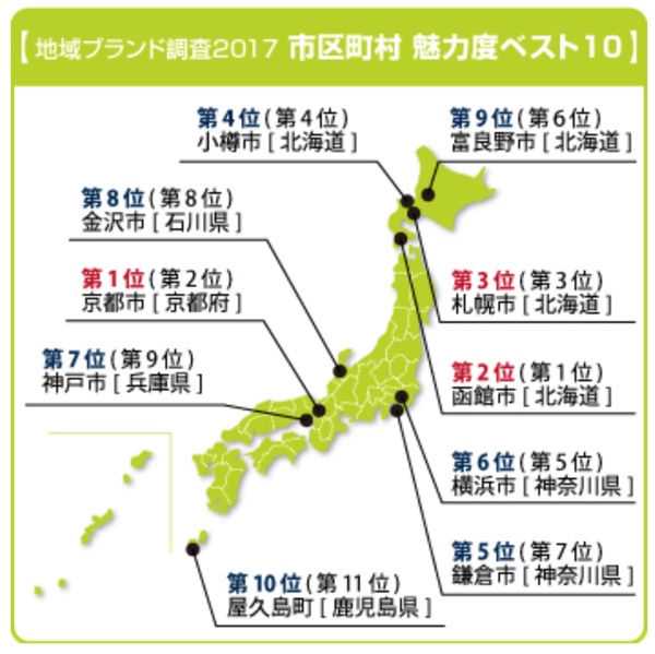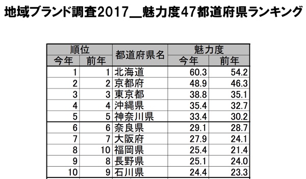 ブランド総合研究所が毎年行っている地域ブランド調査では、魅力度都道府県ランキングで、常にベスト10に入っています。