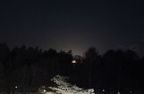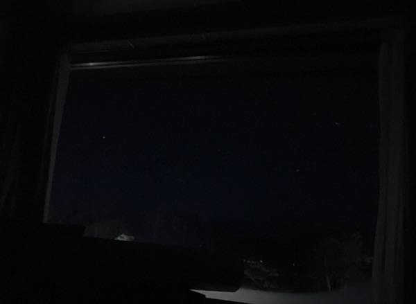 次の画像は、上の画像と同じアングルで明け方撮影したものです。暗い画像ですが、窓枠とその内側にいくつか星が映っているのを確認できるでしょうか。部屋を暗くして見て頂くと見えるかもしれません。