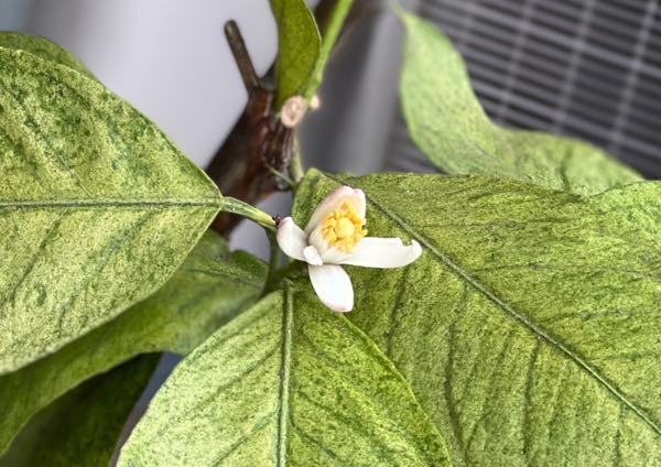 そして、今日は「メイストーム」と呼ばれる現象で風が強まる中、レモンの花が2輪咲いてくれました。例年この時期は、レモンの花芽がつくと強風が吹いて花芽を散らしてしまいます。