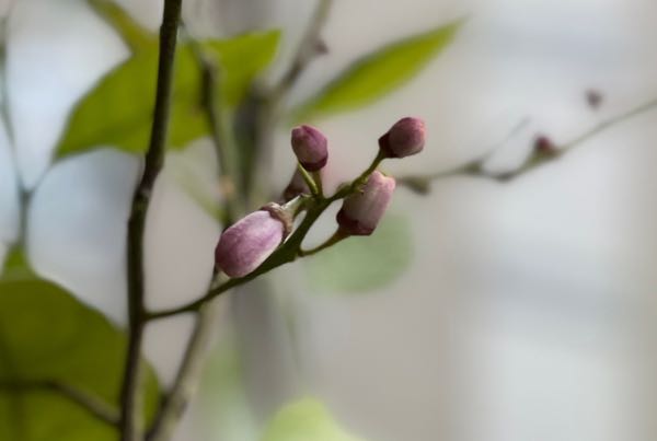 今日もこの後は風が強まる予報なので、花芽が吹き飛ばされないか心配です。みんな吹き飛ばされてしまうと、楽しみにしているレモンが実りませんから。