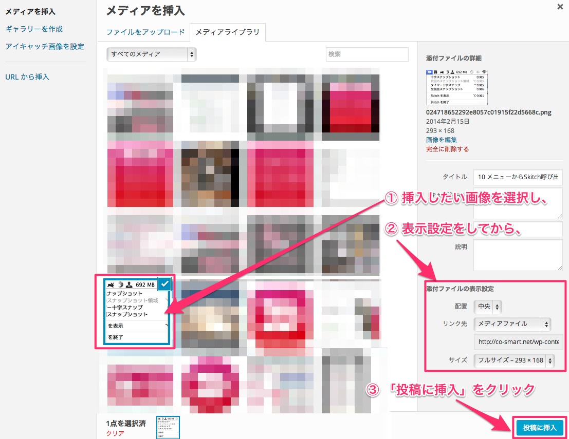 今回は、WordPressという無料のクラウドサービスを用いて、下ごしらえしたスクリーンショットを実際にブログ記事に挿入してアップしている様子をチラッとお見せします。