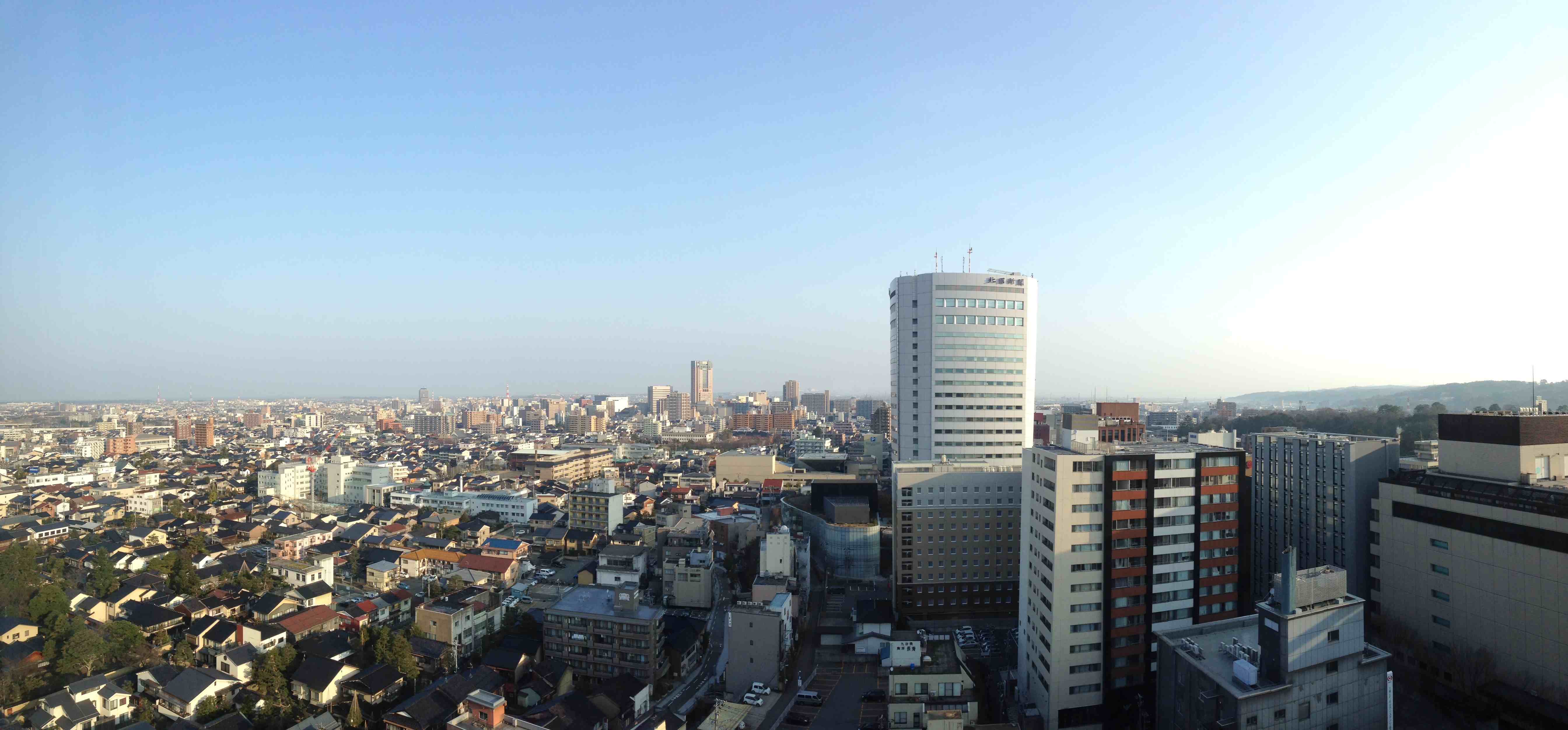 写真は、綺麗に晴れ渡った昨日の朝、ホテル最上階の部屋から金沢駅方面を撮影したものです。また来ることを誓って、金沢からのブログ記事アップを終えます。