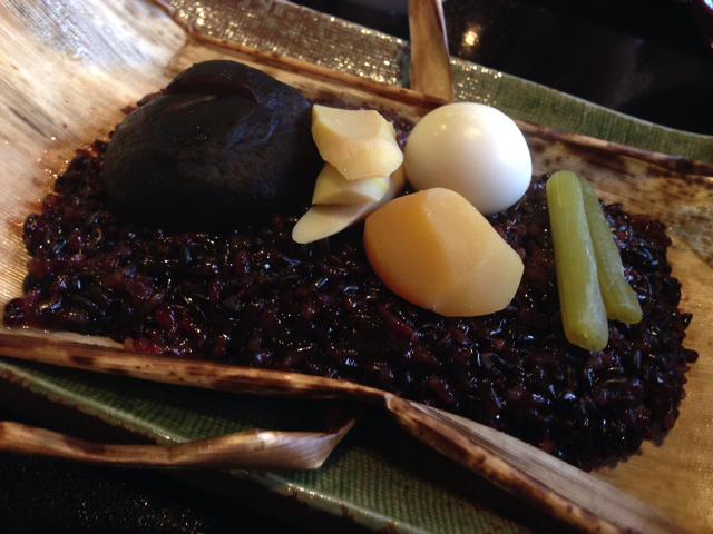 これは、黒米の山菜おこわです。
