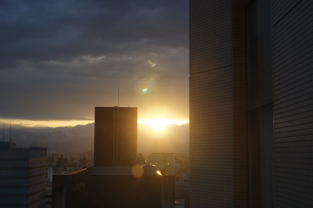 翌朝早く、立山連峰がよく見えて朝日が昇ってきました。