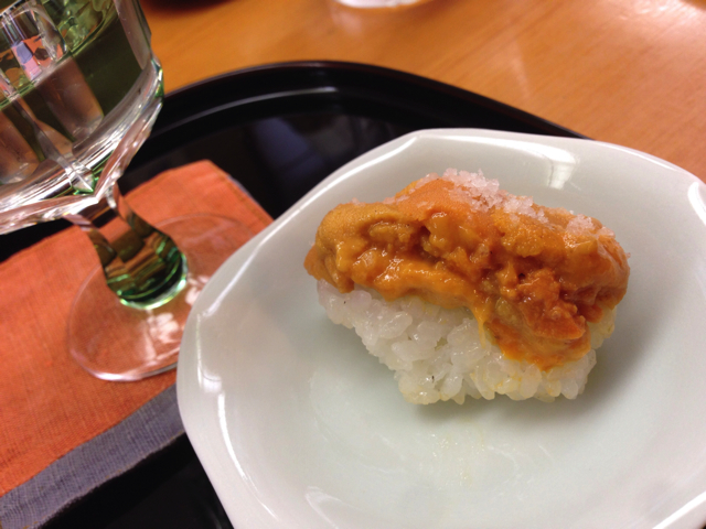 すべてが絶品ですが、ここにはウニの握りを載せておきます。塩で頂くウニはすぐにとろけてしまうので、妻は「いかないでぇ〜!」と言ってました。(^^;