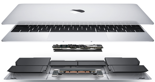 MacBook 2015の内部構造を見ると、ロジックボードがこれまで使っていたMacBook Air 11インチのものより67%も小さくなり、タッチパッド以外はほとんどバッテリーのようです。
