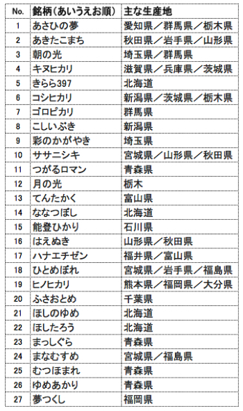 ・・・というわけで、ざっくり調べてみました。千田グループのサイトを参考にさせて頂いたところ、全国主要銘柄として以下の27銘柄がリストアップされていました。