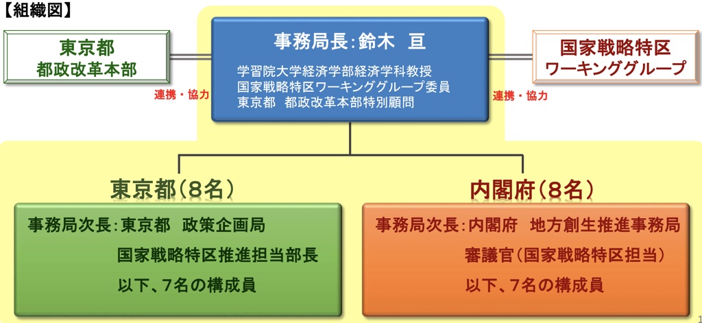 内閣府の資料によると、「東京特区推進共同事務局」の組織図は次の通りとなっています。