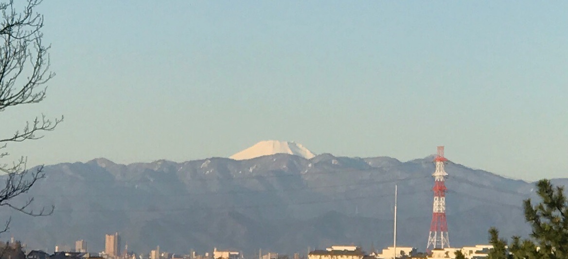 ちょっと離れた別の公園に移動して、丹沢山系越しに頭を覗かせてくれている富士山を撮影しました。こちらでも手を合わせます。