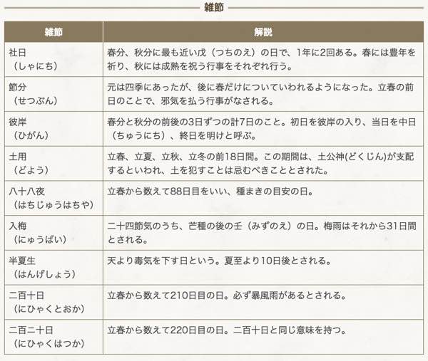 「雑節 (ざっせつ) 」とは?