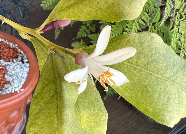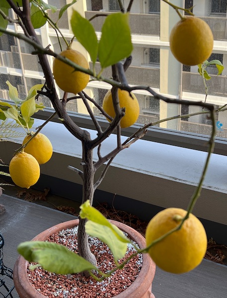 このレモンの鉢植えが、我が家のベランダに来てから四半世紀近く経ちました。一度だけ大きい鉢に植え替えしてあげましたが、その後は植え替えのタイミングを逃し続けています。(ほんとはもう少し大きな鉢に植え替えないといけないのですが……)