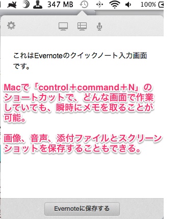 そんな時に便利なのが、1年程前 Evernote for Macに機能追加された「クイックノート」です。