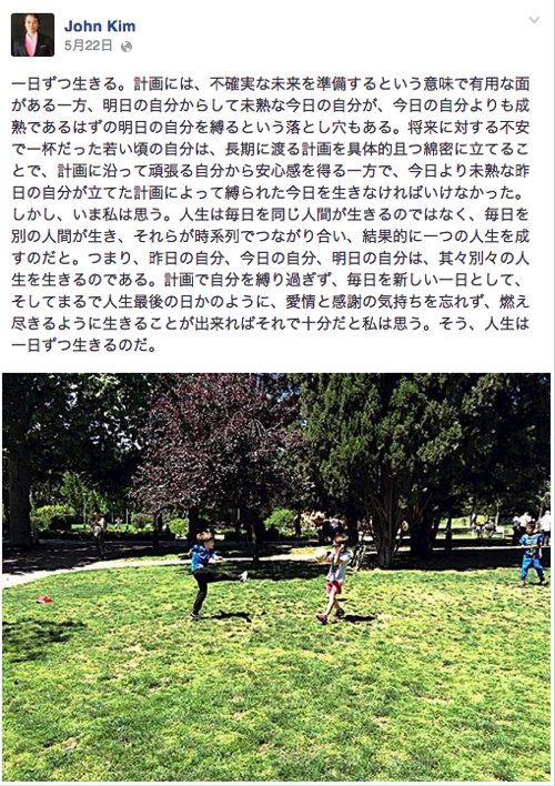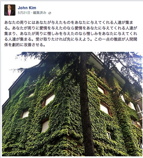 キム先生は、昨年夏パリに滞在中から、Facebookのタイムラインに深いメッセージを寄せられるようになりました。