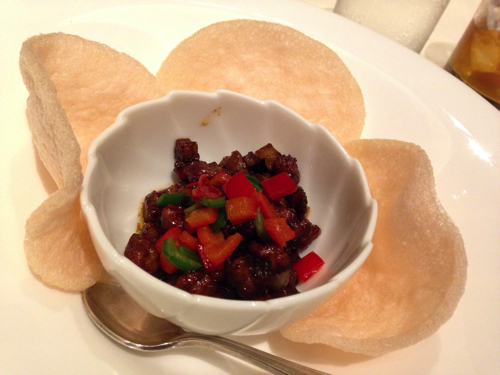 フカヒレ料理で有名な「筑紫樓」の料理長を務められただけあって、スープにさり気なくフカヒレを使い、とてもまろやかで豊潤な味を楽しむことができました。