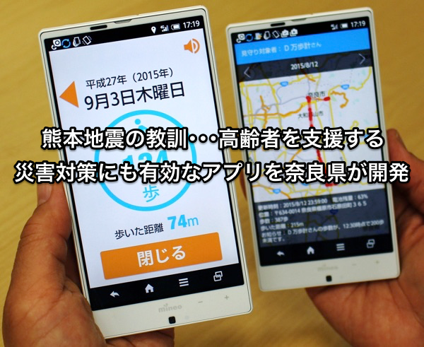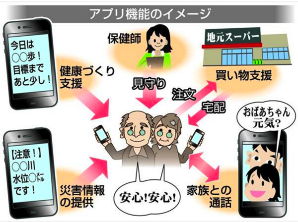そこで、こちらの記事 (2015.9.7付) から、スマホで高齢者を支えようという奈良県の取り組みを一つの事例として見てみましょう。(冒頭の画像も、こちらの記事から引用させて頂きました)